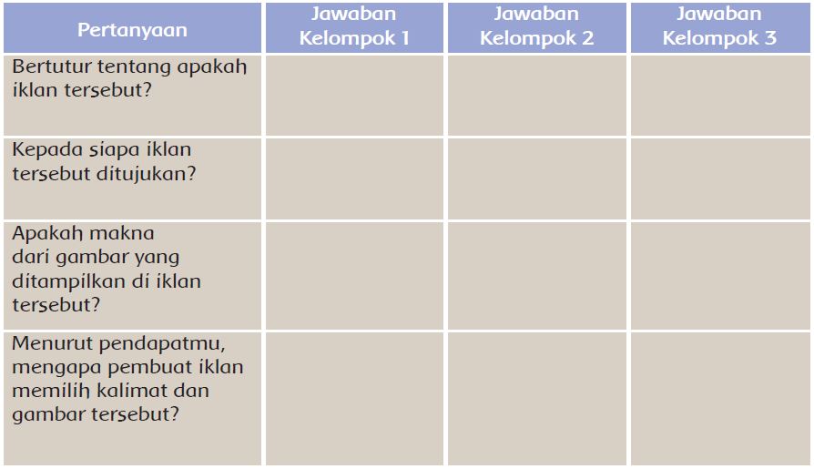 Bertutur Tentang Apakah Iklan Tersebut Jawaban Kelompok 1 Jawaban Kelompok 2 Jawaban Kelompok 3