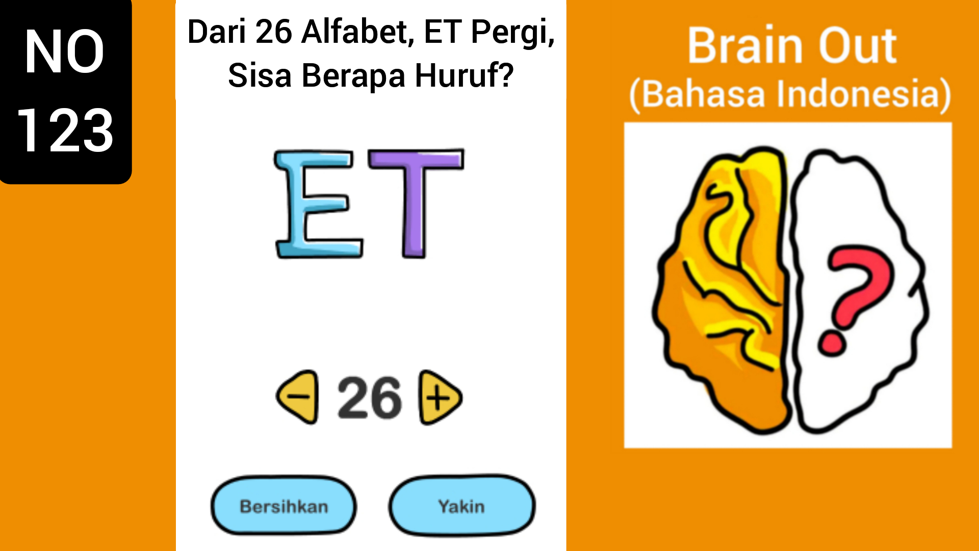 Brain Out Level 123: Dari 26 Alfabet, ET Pergi, Sisa Berapa Huruf? (Terbaru 2020)