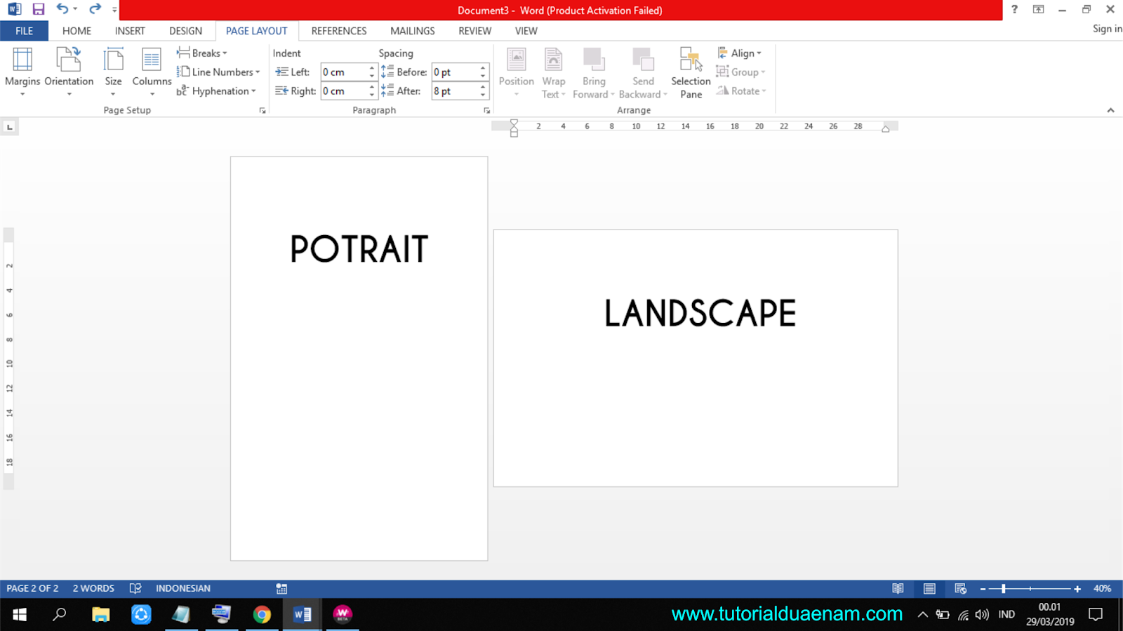 Membuat Halaman Portrait dan Landscape Dalam Satu File | Edu Sejarah