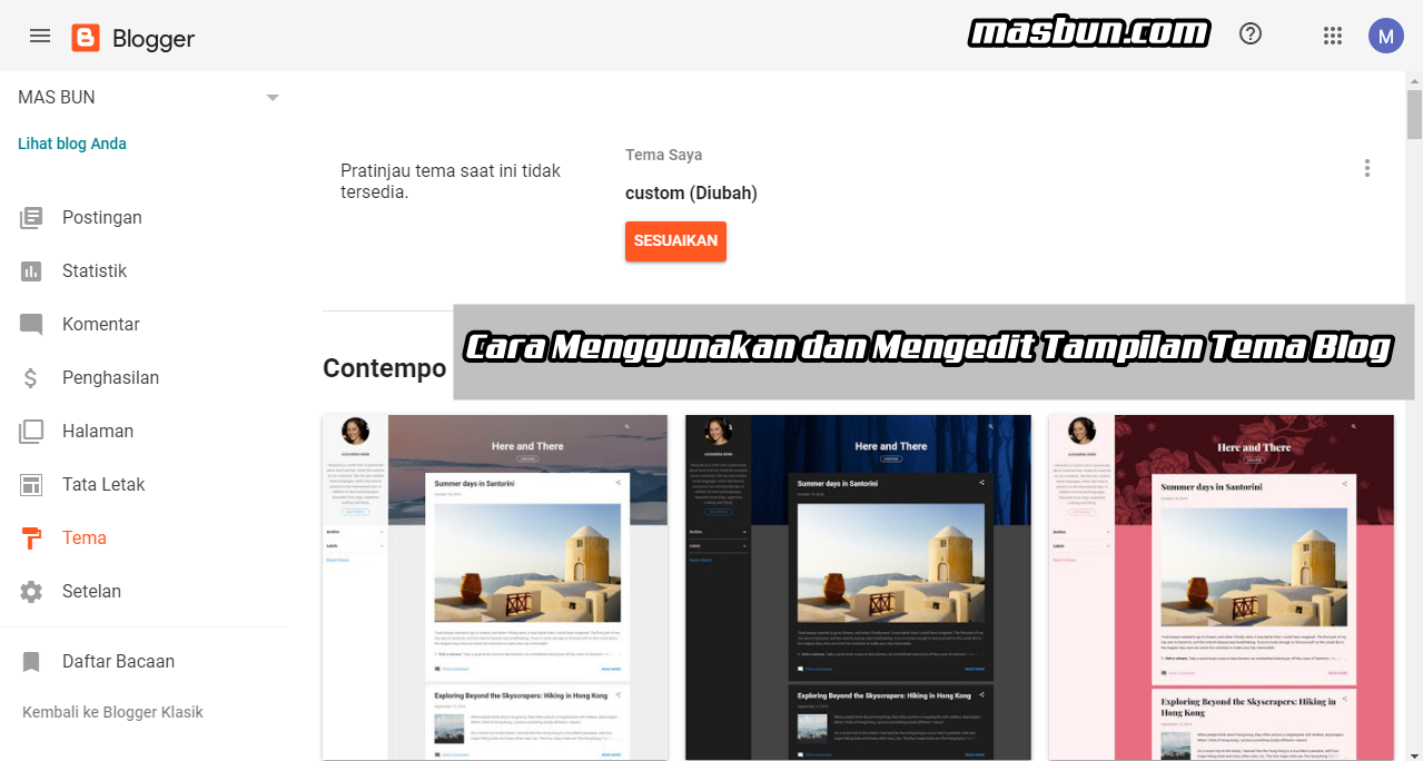 Cara Menggunakan dan Mengedit Tampilan Tema Blog - MAS BUN