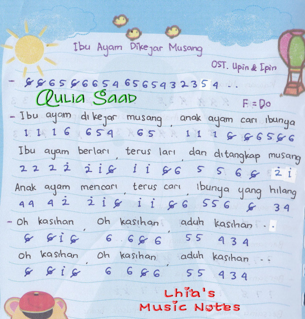 ibu ayam di kejar musang Not Angka Piano dan Gitar Serta Lirik …