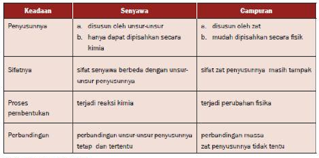 5 Perbedaan Unsur Senyawa dan Campuran dalam Bentuk Tabel - Materi Kimia