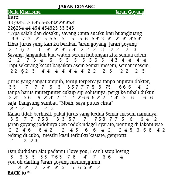 Nella Kharisma - JARAN GOYANG Chord/Kunci Gitar - Chord Gitar Online