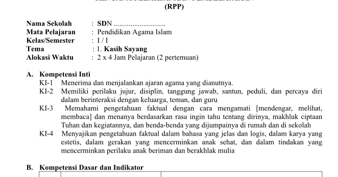 Sedia RPP PAI SD Kurikulum 2013 Revisi 2020