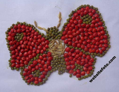 gambar kolase biji-bijian bentuk kupu-kupu | Biji-bijian, Kolase kertas, Kolase