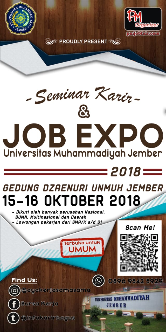 Seminar Karir & Job Expo UNMUH Jember 2018 15-16 Oktober 2018 Gedung Dzainuri Universitas Muhammadiyah Jember, Jl. Karimata No. 49 … | Universitas, Gedung, Pengikut