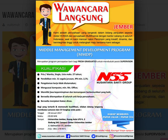 Lowongan Kerja NSS (Nusantara Sakti) Walk In Interview Jember - kebanyuwangi.com | Situs Informasi Banyuwangi