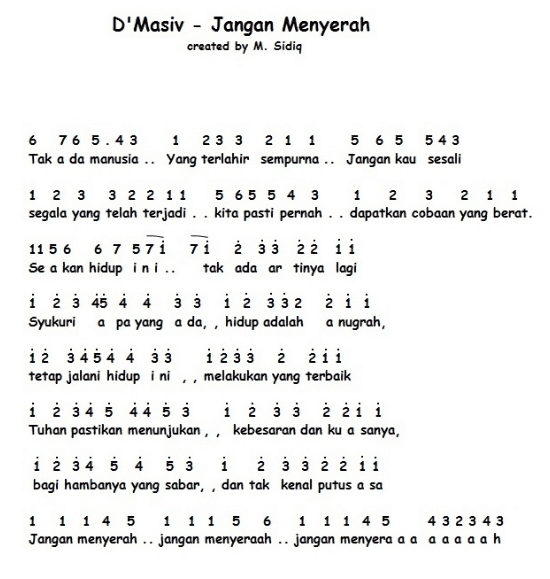 Not Angka Lagu “Jangan Menyerah” D’Masiv