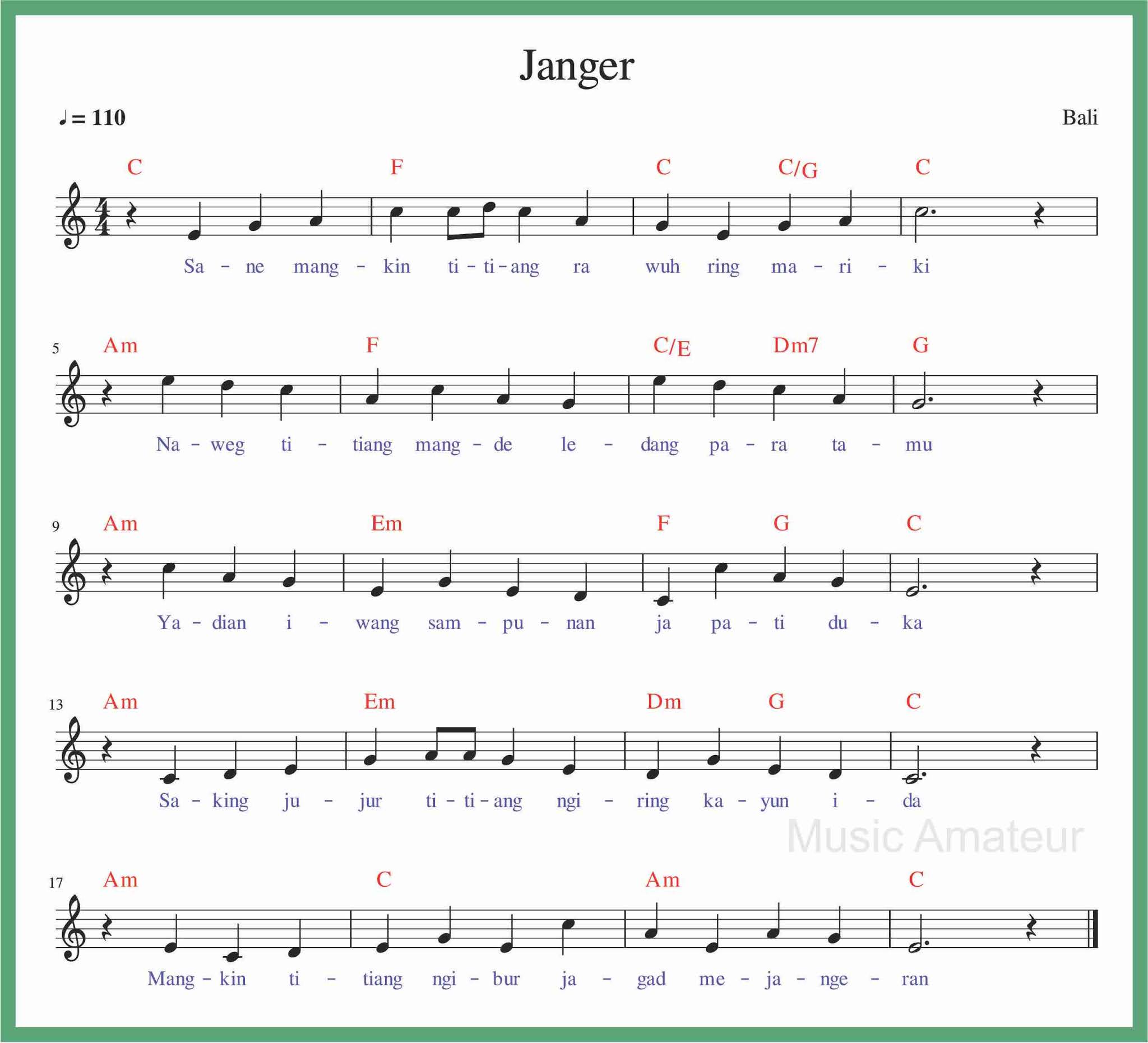 Partitur Lagu Janger (Bali) | tunas63