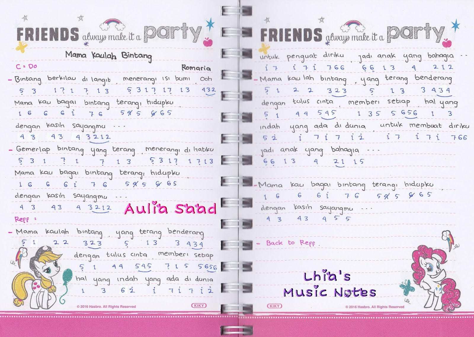 Not Angka : Romaria - Mama Kaulah Bintang (OST. Bintang Di Hatiku) | Aulia’s World