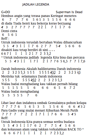Lirik dan Not Angka Pianika Jadilah Legenda - Superman Is Dead …