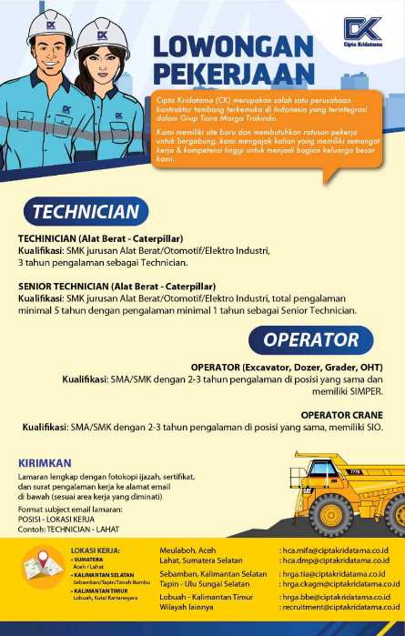 INFO LOWONGAN KERJA PT CIPTA KRIDATAMA