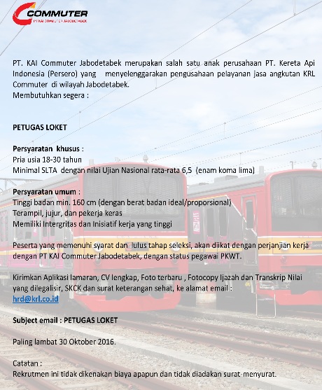 Lowongan Kerja Rekrutmen Lowongan Kerja PT. KAI Commuter Jabodetabek