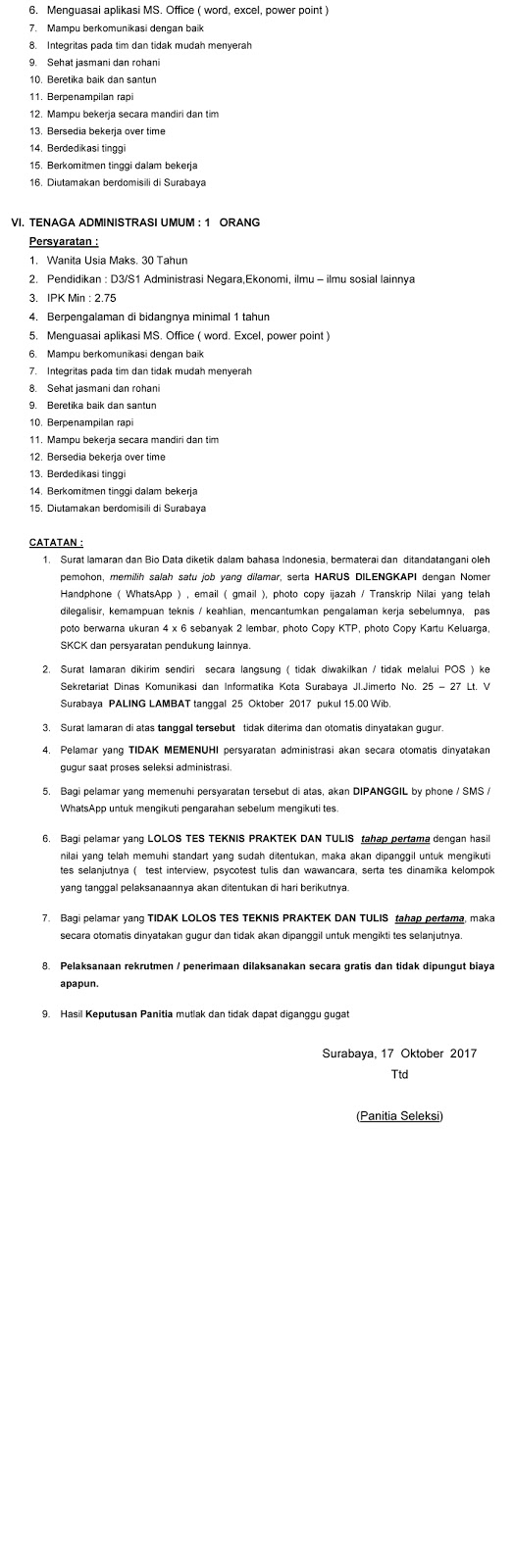 Lowongan Kerja – Dinas Perdagangan Surabaya