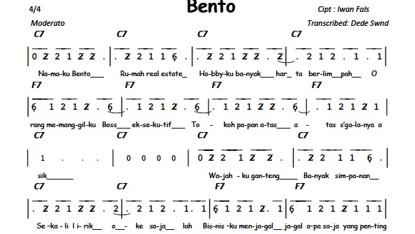 Not Angka Pianika Lagu Bento Iwan Fals - Not Lagu Lengkap