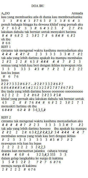 Not Angka Pianika Lagu Doa Ibu - Armada | Pianika | Recorder | Keyboard | Suling | Chord Piano
