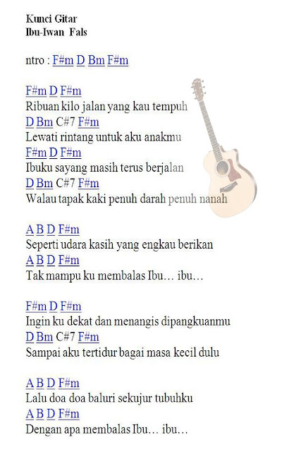 Kunci Gitar Mudah Lagu Ibu -Iwan Fals | Not Pianika Lagu
