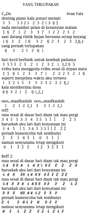 Not Angka : Iwan Fals – Yang Terlupakan | Lhia’s Music Notes