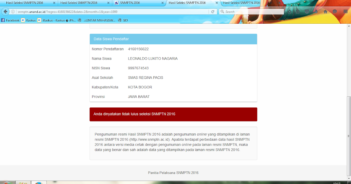 Pengumuman SNMPTN 2016 - Ikatan Pelajar Dan Mahasiswa Kabupaten …