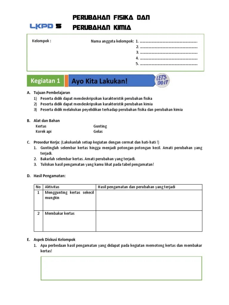 Lembar Kegiatan Siswa Pengamatan Perubahan Fisika dan Perubahan Kimia