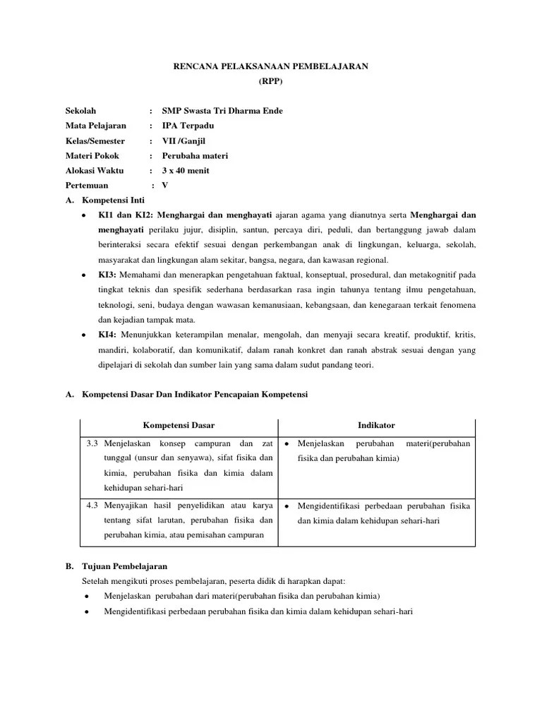 RPP Perubahan fisika dan perubahan kimia