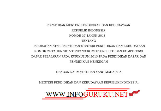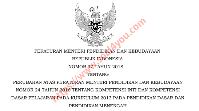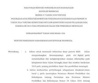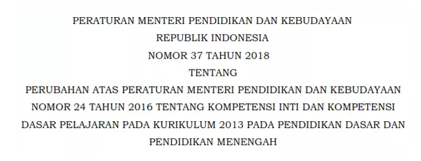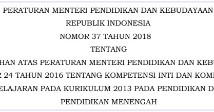 Permendikbud No 37 Tahun 2018 Perubahan KI dan KD Kurikulum 2013 …