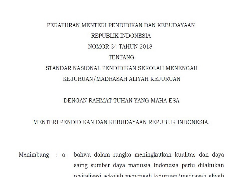 Unduh PDF Permendikbud Nomor 34 Tahun 2018 Tentang Standar …