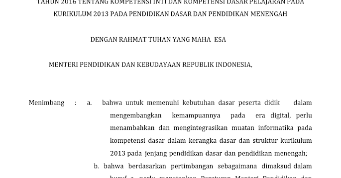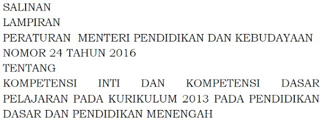 Permendikbud Nomor 24 Tahun 2016 tentang KI dan KD Pelajaran Pada …
