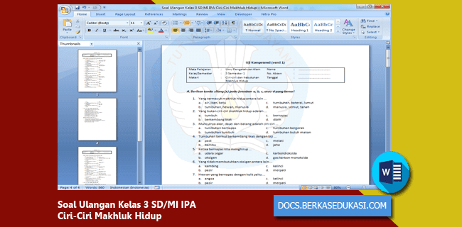 Soal Ulangan Kelas 3 SD MI IPA Ciri-Ciri Makhluk Hidup - Dokumen …