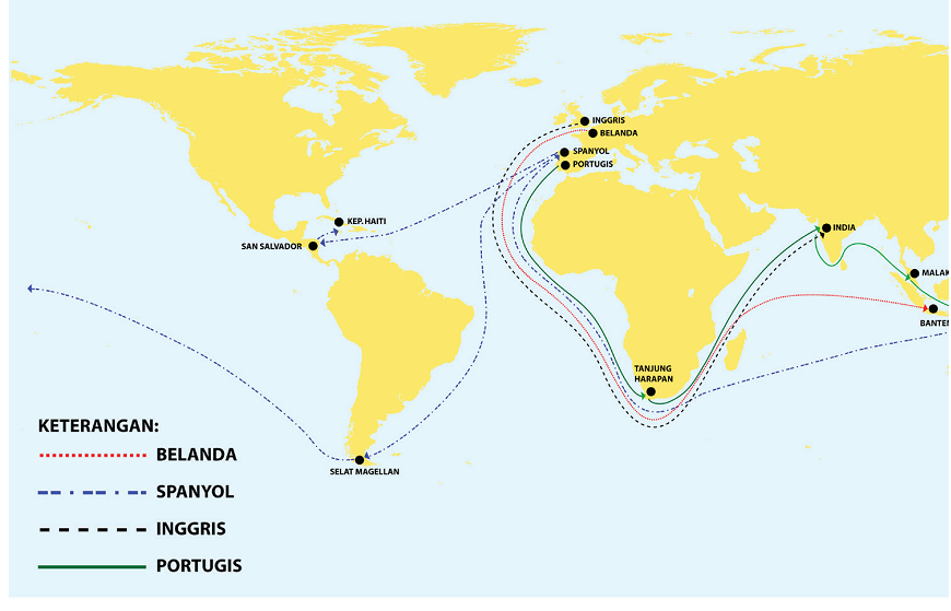buatlah peta ilustrasi proses kedatangan bangsa bangsa barat ke indonesia - Brainly.co.id