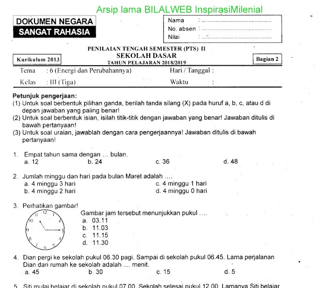 Soal Ulangan Harian PAI Kelas 3 Semester 2 K-13 - SekolahDasar.Net