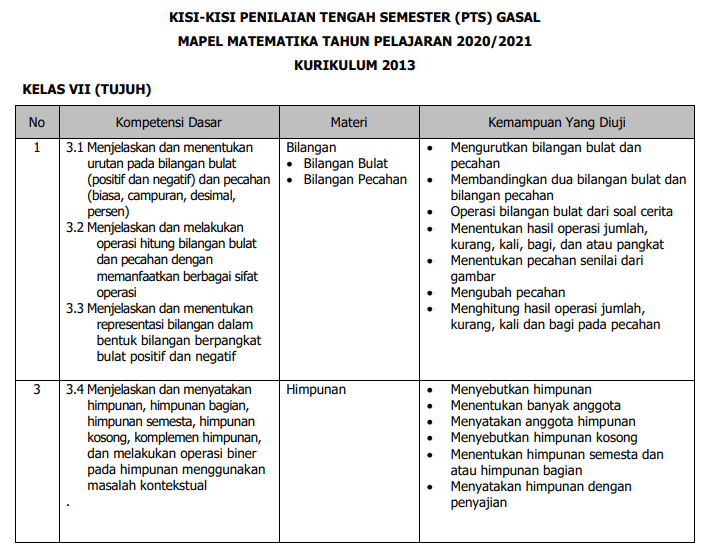 kisi-kisi PAS MTK Kls 7 - 2019-2020 .doc - KISI \u2013 KISI …