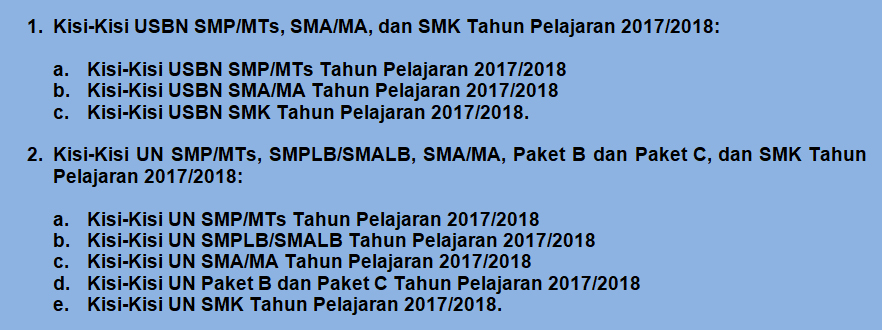 Kisi-Kisi USBN dan UN Tahun 2018 SMP/MTs, SMPLB, SMALB, SMA/MA, Paket B, Paket C, dan SMK Lengkap - Dadang JSN