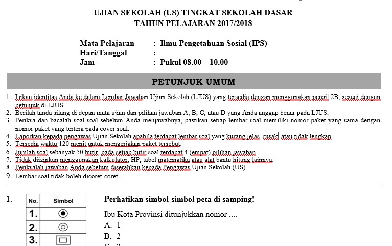 Soal Ujian Sekolah (US) IPS Kelas 6 SD/MI Tahun Ajaran 2017/2018 …