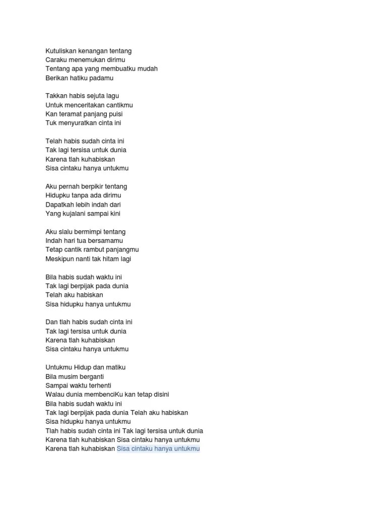 Lirik Lagu Telah Habis Sudah Cinta Ini