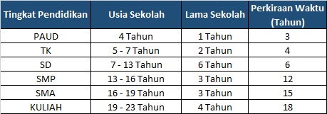 Menghitung Dana Pendidikan PAUD, TK, SD, SMP, SMA dan Kuliah