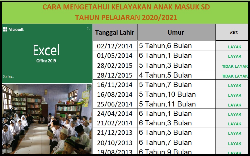 Aplikasi excel mengetahui layak atau tidak layaknya anak masuk SD tahun 2020/2021 - Edukasinfo.Net